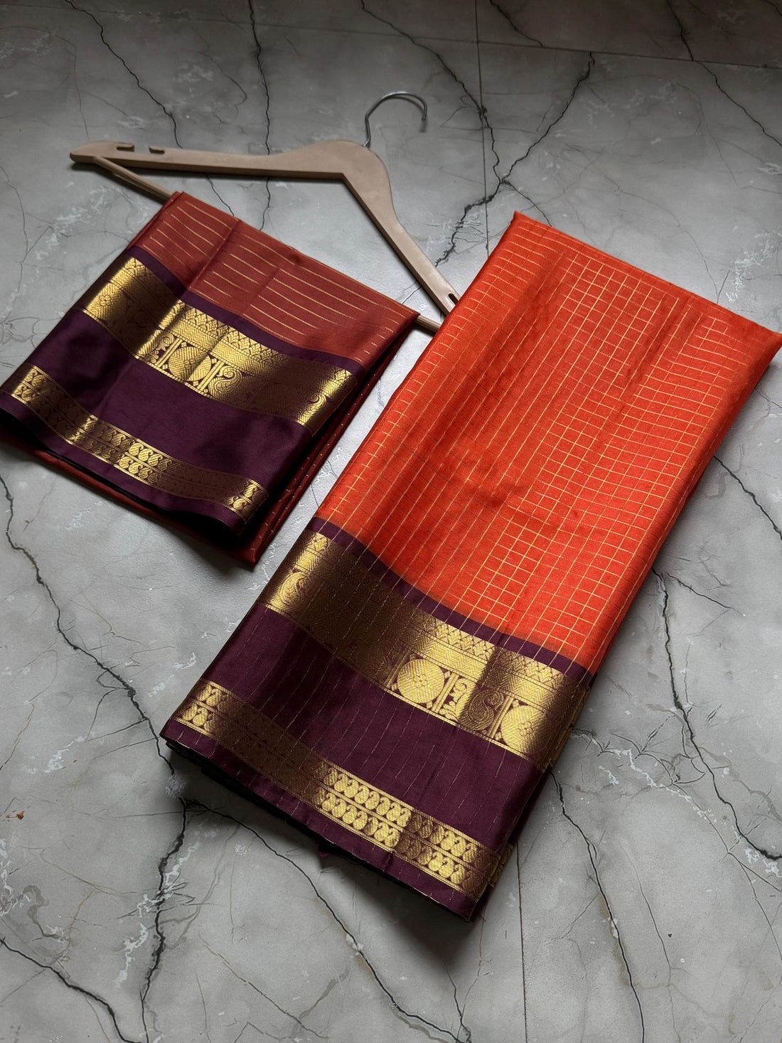 *New Arrival*Banarasi semi katan soft zari check silk saree Full body checks Tissu weaving Sattan border and...